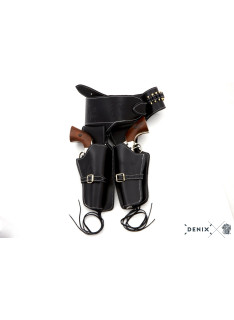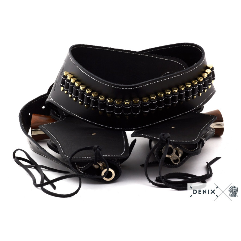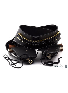 Opasek s pozdrem na dvě pistole. Výborný i jako součást maškarního kostýmu ve stylu western, cowboy nebo jako dekorace. Nesmí chybět ve sbírce westernového sběratele.